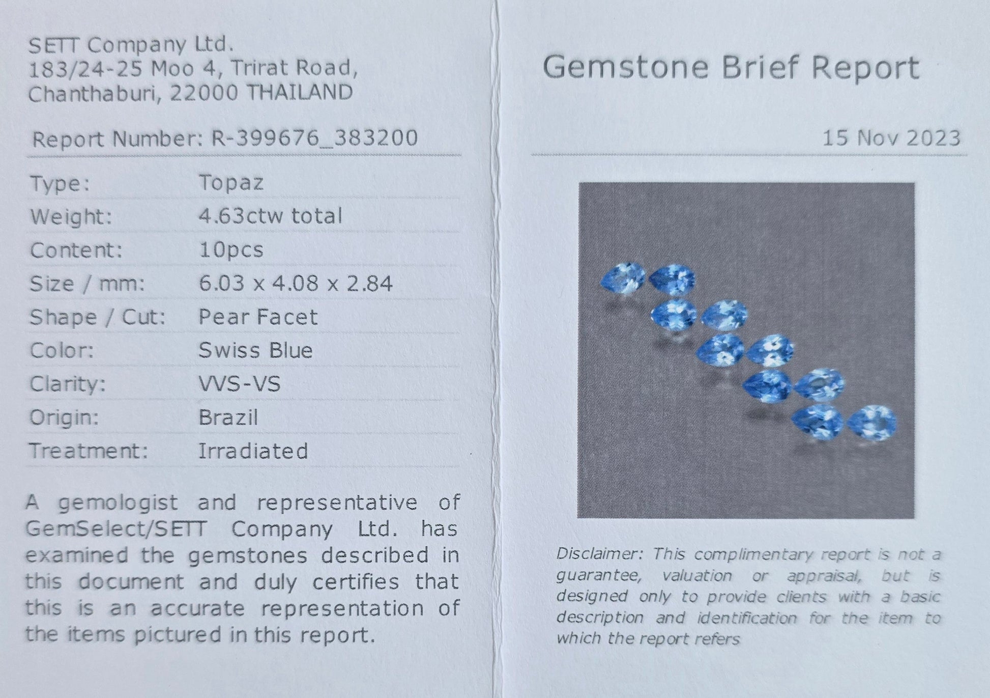 Stein 1 : Swiss Blue Topas 2 Stück